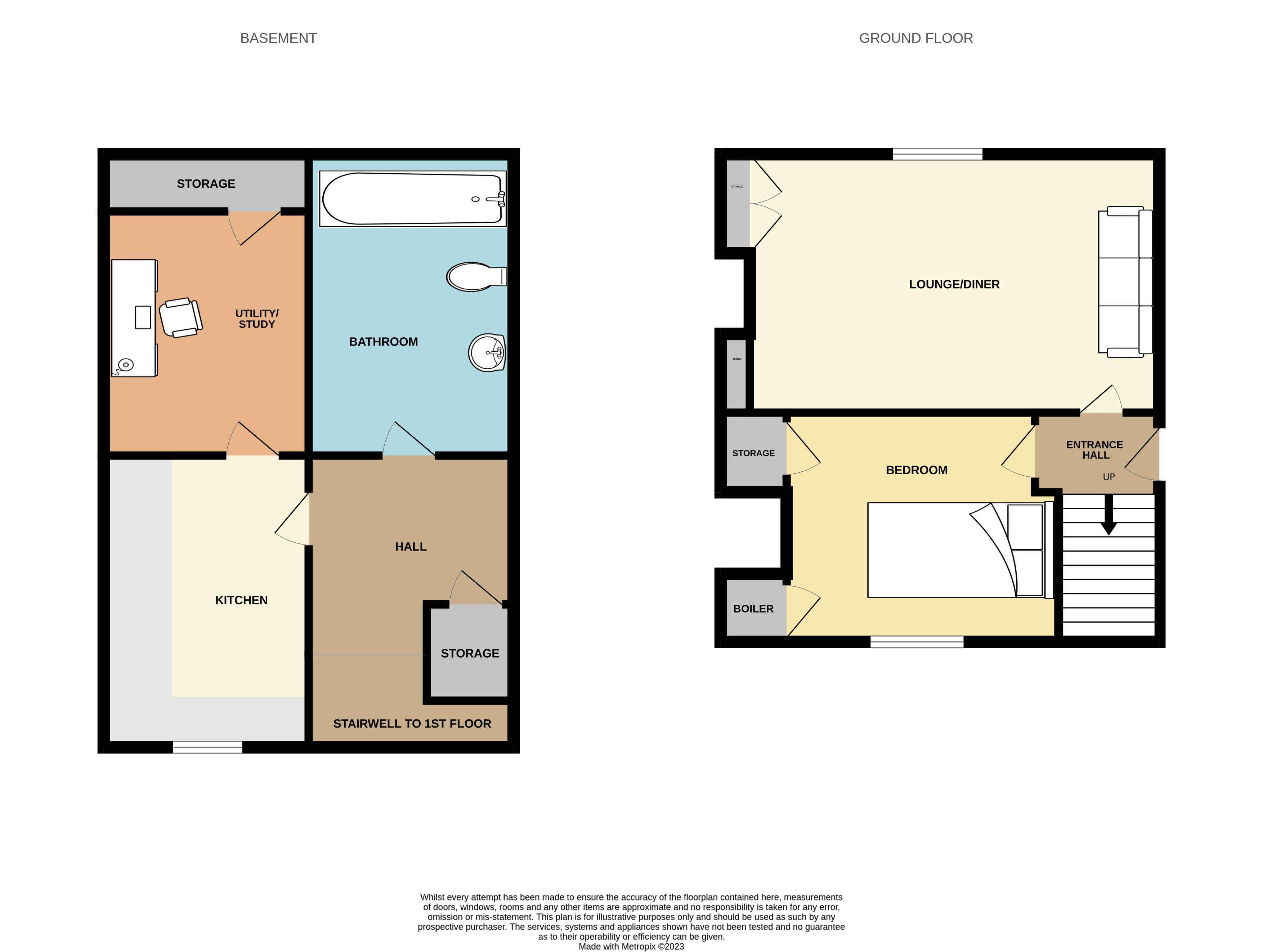 This unique property measures 66 square metres and comprises: entrance vestibule leading to the large front facing lounge with ample dining space, double bedroom with built in storage to the rear and the stairs to the basement level. The lower level has a large modern bathroom with shower over bath, a large storage cupboard in the hall, modern rear facing kitchen, a large utility room or study space with a large storage cupboard.