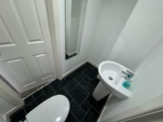 Carpeted upper landing leads to two bedrooms. Bedroom one is rear facing with fitted bedroom suite including wardrobes and drawers with fitted carpet. The bedroom gives access to Jack and Jill wc comprising low flush wc, wash hand basin and vinyl flooring. Bedroom two is front facing with fitted wardrobes and carpet.