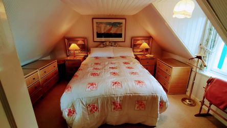 • A charming front garden leading directly down to the sea-shore with lawns and rose beds and a raised wooden deck at the water’s edge, with a dining area, and unrestricted views across the loch.