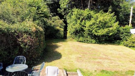 • A generous rear garden forming a sheltered sun-trap with sloping lawn, mature hedging, and trees. Plenty space for a large extension !